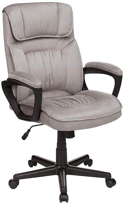 Amazonbasics Classic Office Desk Computer Chair Adjustable Swiveling Ultra Soft Microfiber Light Gray Lumbar Support Bifma Certified