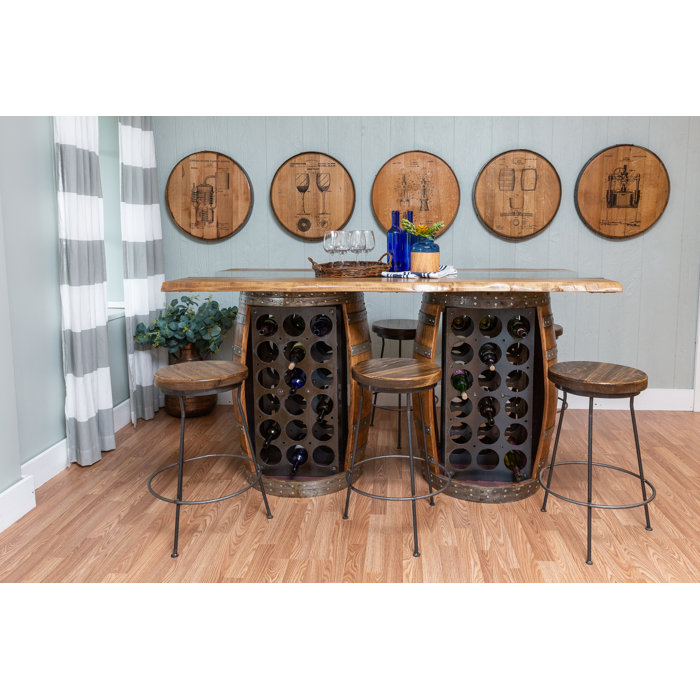 Andy Live Edge And Glass Top Double Barrel Bar Set