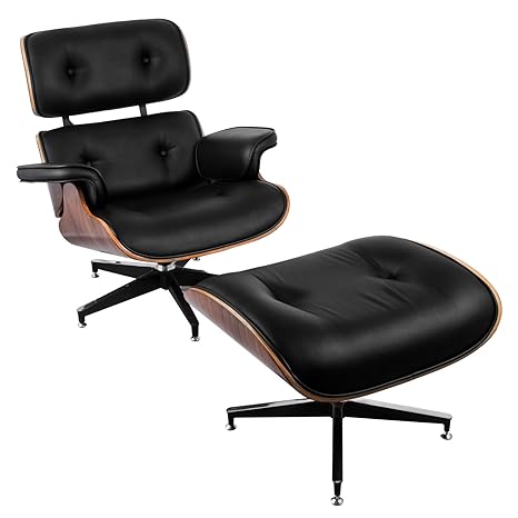 Happybuy Lounge Chair With Ottoman Mid Century Modern Replica Style Recliner Chair High Grade Vintage Walnut Black Living Room Pu Leather Recliner